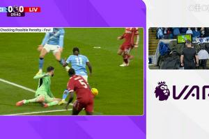 体育资讯11月10日讯 曼城vs利物浦第10分钟,多库禁区内倒地,裁判看VAR后判罚点球!