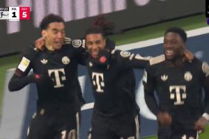 第87分钟,奥利塞破门,穆西亚拉助攻,拜仁5-1。↓
