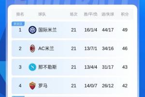 本轮后米兰联赛20轮不败,距榜首国米3分。罗马本轮后取得三连胜,他们距离第3那不勒斯仅1分。