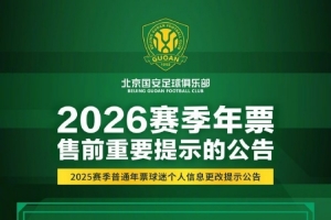 下一篇: 国安发布年票售前提示公告:春节假期后启动年票发售工作