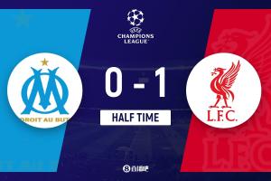 上半场伤停补时2分钟,半场结束,利物浦暂1-0马赛。