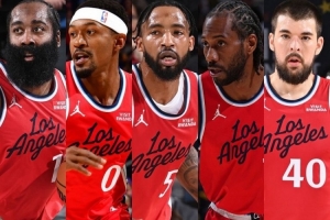 本赛季快船最常用的阵容是哈登、比尔、小琼斯、莱昂纳德和祖巴茨组成的首发阵容。这阵容在9场比赛中出场63分钟,进攻效率120.9,防守效率为131.8,净效率为-10.9。