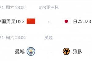 今晚U23亚洲杯决赛,U23国足vs日本,曼城vs狼队